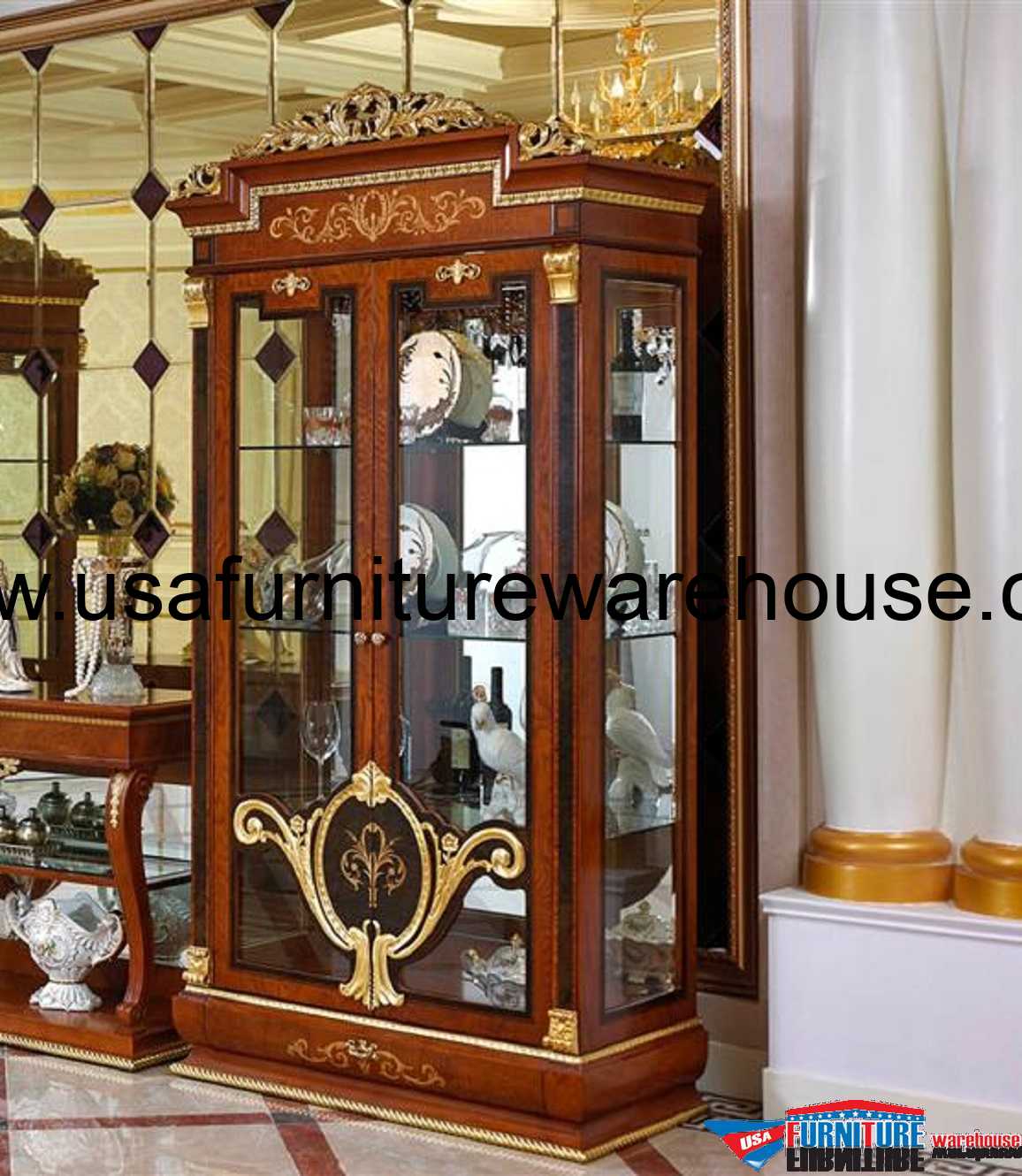 European Luxury Collection 2 Door Showcase Cabinet Usa Furniture Warehouse